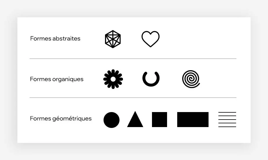 Une fois que vous avez choisi votre couleur et votre police, il est temps de réfléchir à la forme de votre logo. Les formes, tout comme les couleurs, ont une signification symbolique et peuvent susciter des émotions.