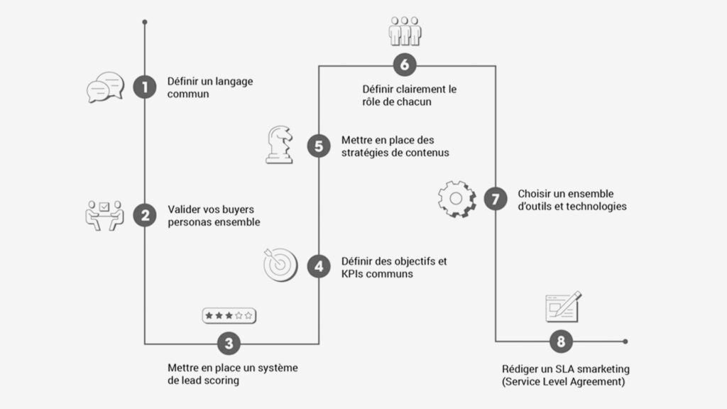 - Établir des processus partagés : définissez des processus clairs pour la gestion des prospects et des clients, pour garantir que les efforts des équipes marketing et ventes soient alignés.