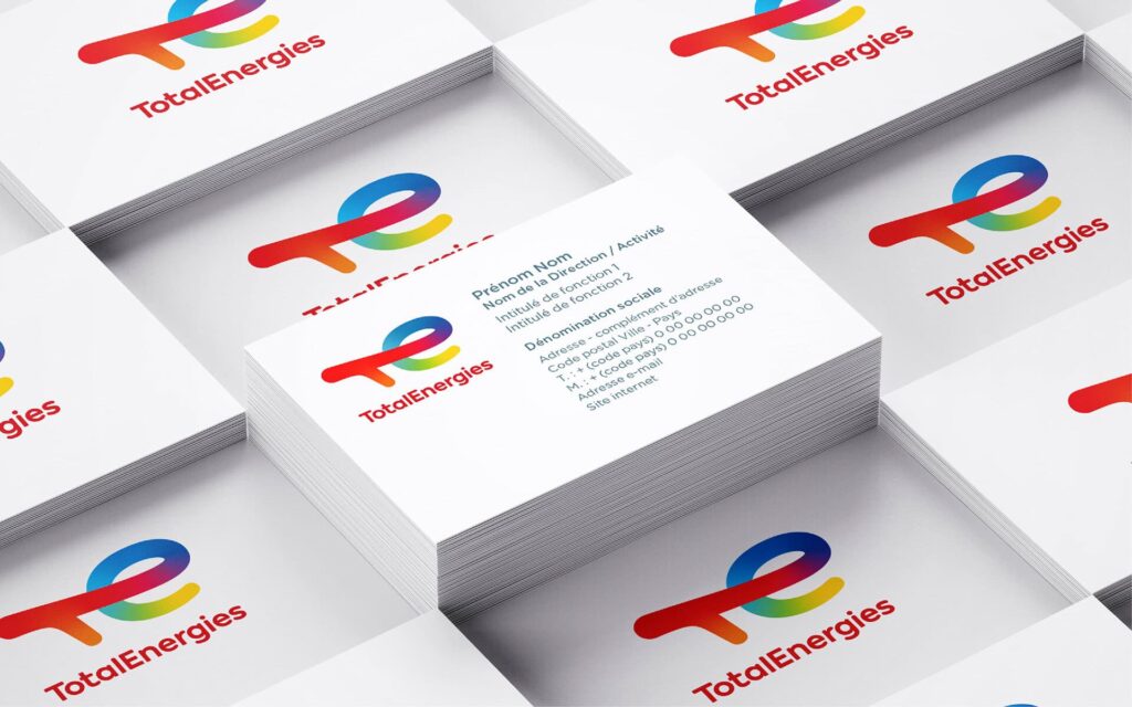Le 28 mai dernier, la nouvelle identité de Total a été dévoilée, avec un nouveau logo, un spot publicitaire « dessiné à la main » mettant en avant les couleurs de l’arc en ciel pour symboliser « toutes les énergies » et une nouvelle station-service TotalEnergies à la Défense.