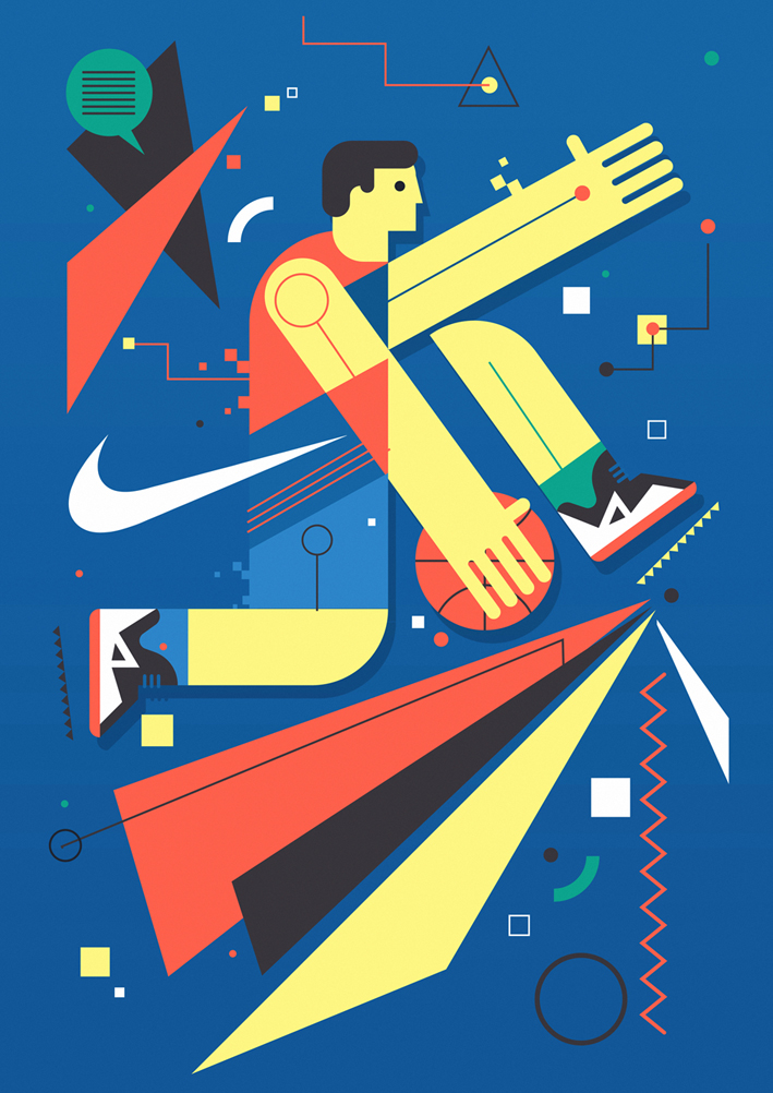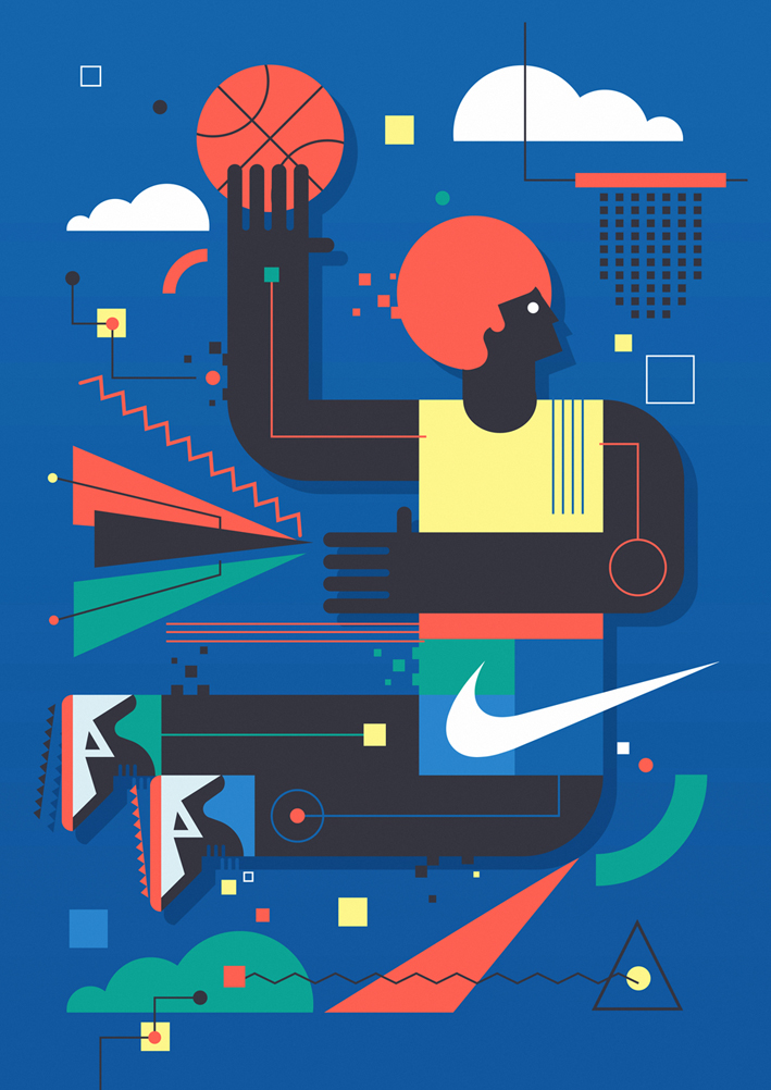 L’illustrateur développe ses compétences en collaborant avec de nombreuses marques. Dernièrement, il a réalisé pour Nike une magnifique fresque pour un terrain de Basketball à Barcelone.