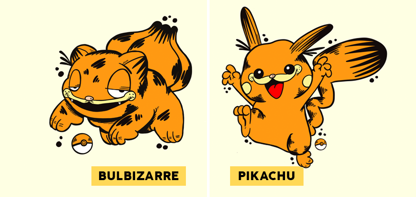 Shawn Bowers est un illustrateur passionné de pop culture qui s’est amusé à réaliser un projet de mashups totalement improbables : mixer Garfield, le chat roux le plus célèbre de la planète, avec les différents Pokémon.