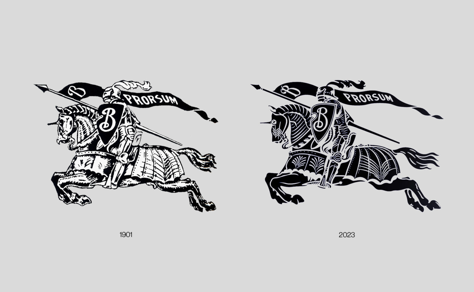 - L’abandon puis la réintroduction de l’icône du chevalier par Burberry en 2018 et 2022 respectivement.